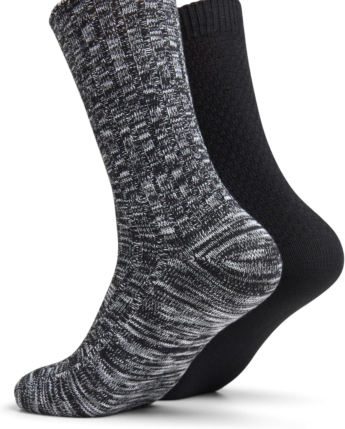 Clarks Men’s Casual Solid Heavy Rib Crew Socks With Soft Touch 2 Pair, Black, Men’s 7-12 Shoe