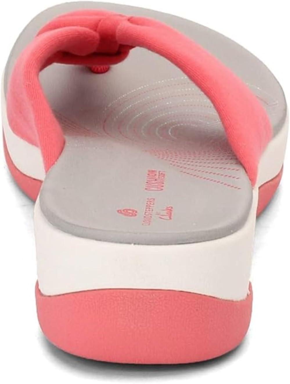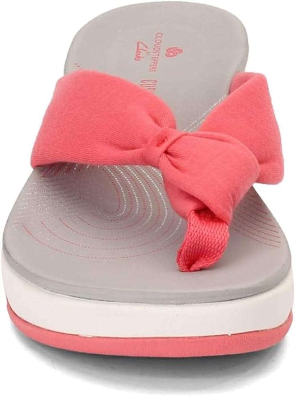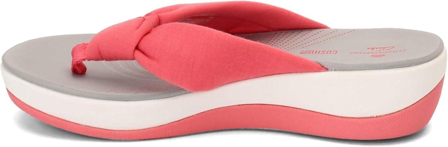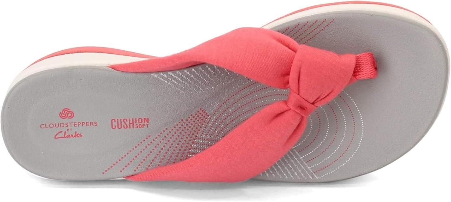 The Arla Glison from Clarks Cloudsteppers provides the best of comfort technology with classic feminine appeal. A fabric upper feels delicately soft between the toes, while an EVA midsole keeps the sandals feather light. The OrthoLite footbed with Cushion Soft technology ensures optimal comfort all day. An ultra-wearable flip-flop with no shortage of personality. Sole material TPR.