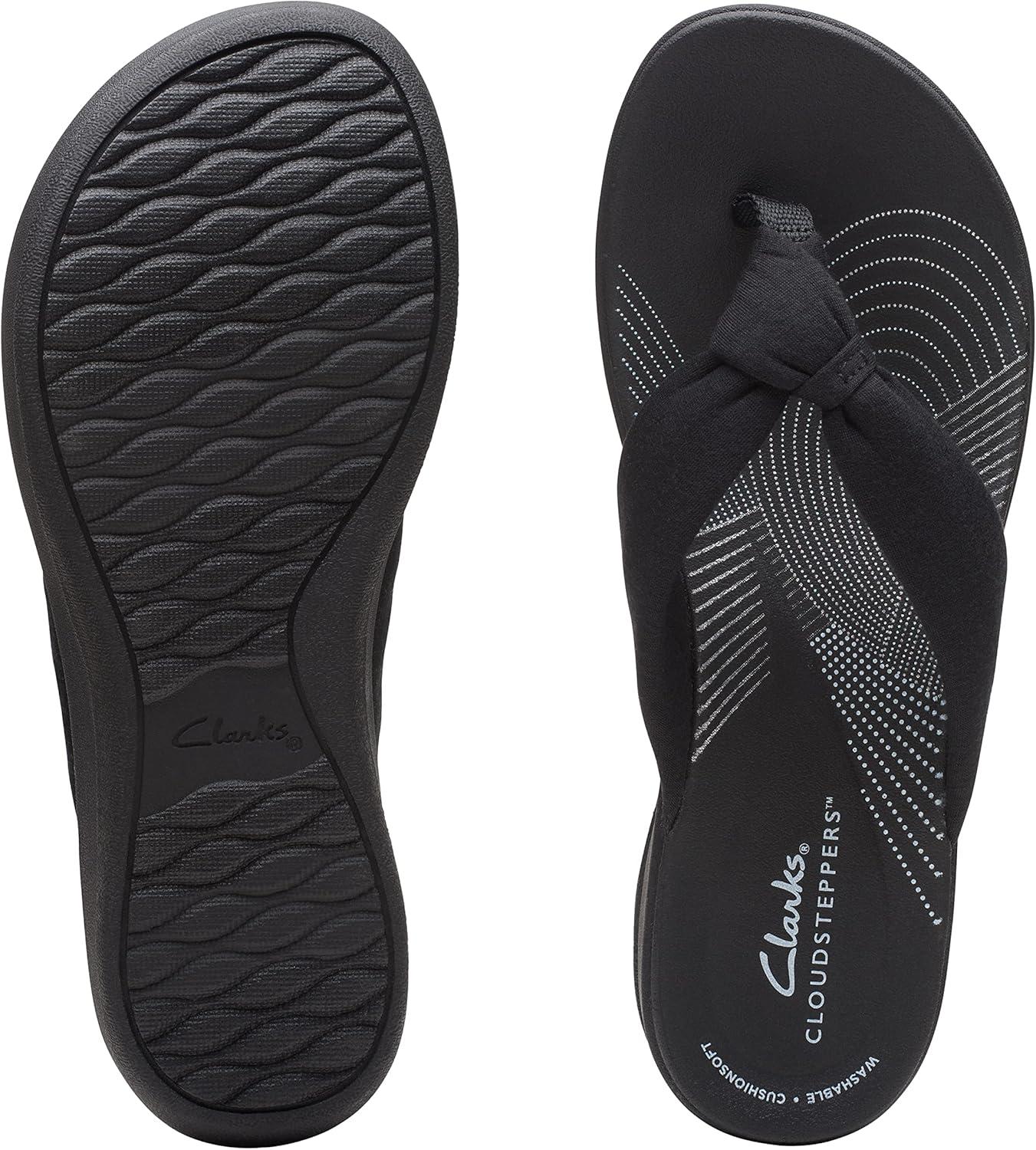 The Arla Glison from Clarks Cloudsteppers provides the best of comfort technology with classic feminine appeal. A fabric upper feels delicately soft between the toes, while an EVA midsole keeps the sandals feather light. The OrthoLite footbed with Cushion Soft technology ensures optimal comfort all day. An ultra-wearable flip-flop with no shortage of personality. Sole material TPR.