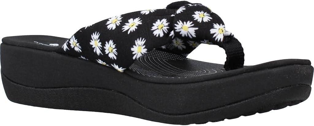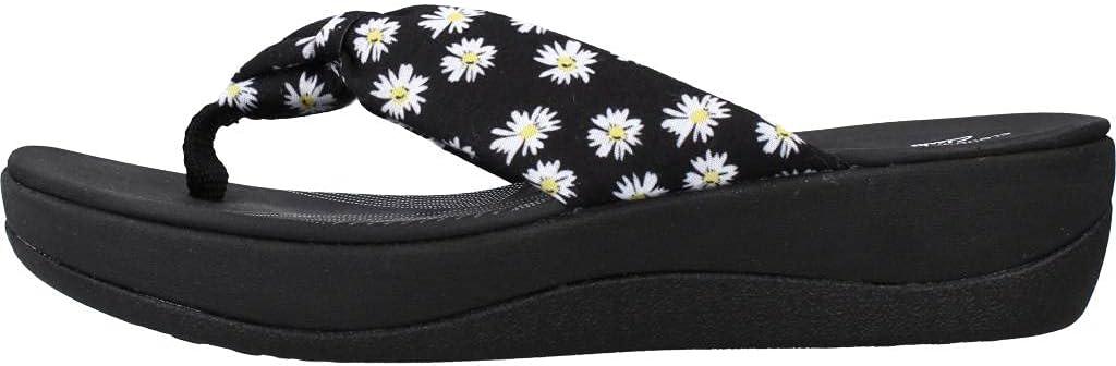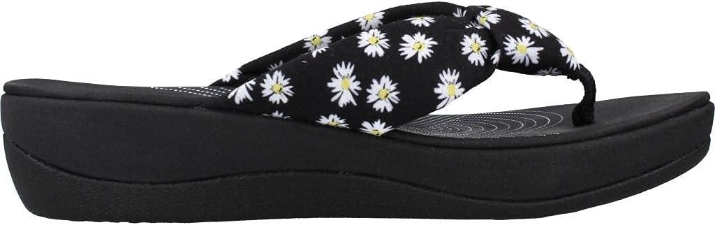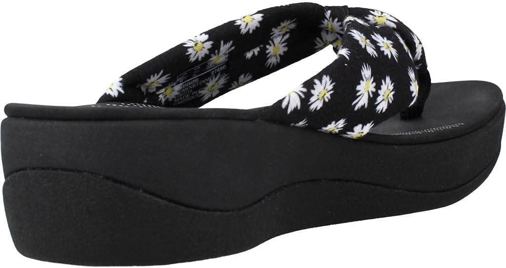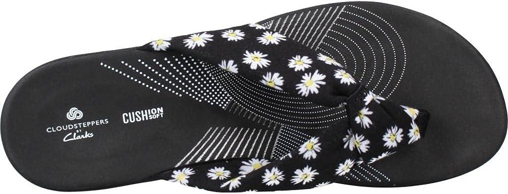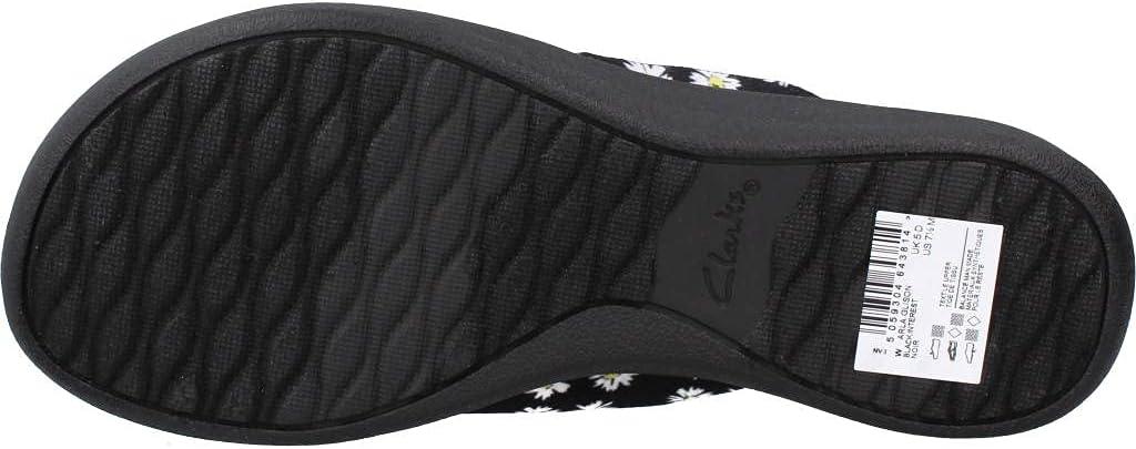 Clarks Women’s Arla Glison Flip Flop(Black Textile With Daisies)