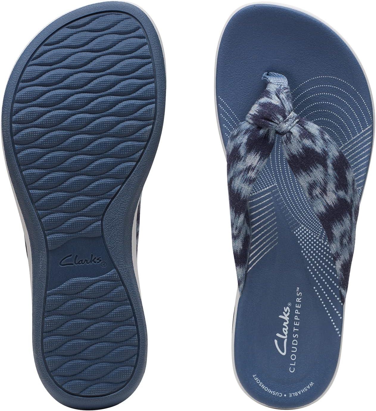 The Arla Glison from Clarks Cloudsteppers provides the best of comfort technology with classic feminine appeal. A fabric upper feels delicately soft between the toes, while an EVA midsole keeps the sandals feather light. The OrthoLite footbed with Cushion Soft technology ensures optimal comfort all day. An ultra-wearable flip-flop with no shortage of personality. Sole material TPR.