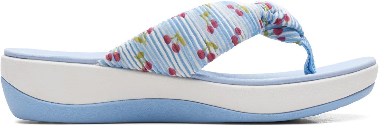 The Arla Glison from Clarks Cloudsteppers provides the best of comfort technology with classic feminine appeal. A fabric upper feels delicately soft between the toes, while an EVA midsole keeps the sandals feather light. The OrthoLite footbed with Cushion Soft technology ensures optimal comfort all day. An ultra-wearable flip-flop with no shortage of personality. Sole material TPR.