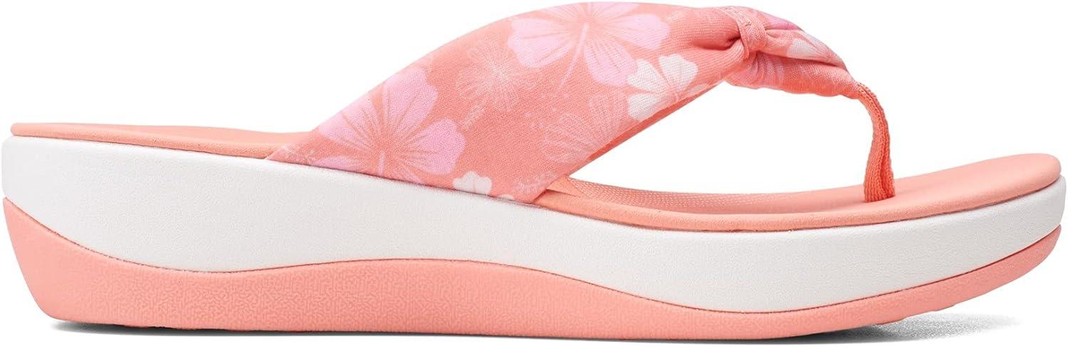 The Arla Glison from Clarks Cloudsteppers provides the best of comfort technology with classic feminine appeal. A fabric upper feels delicately soft between the toes, while an EVA midsole keeps the sandals feather light. The OrthoLite footbed with Cushion Soft technology ensures optimal comfort all day. An ultra-wearable flip-flop with no shortage of personality. Sole material TPR.