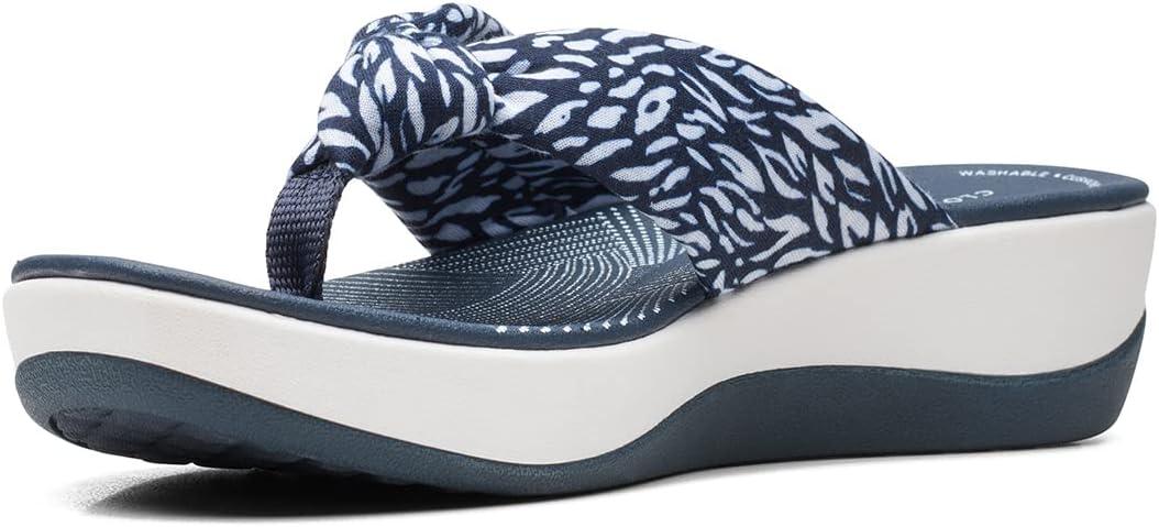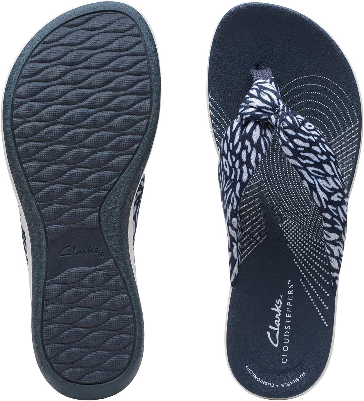 The Arla Glison from Clarks Cloudsteppers provides the best of comfort technology with classic feminine appeal. A fabric upper feels delicately soft between the toes, while an EVA midsole keeps the sandals feather light. The OrthoLite footbed with Cushion Soft technology ensures optimal comfort all day. An ultra-wearable flip-flop with no shortage of personality. Sole material TPR.