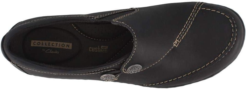 The ultimate in ease and wear ability, this classic slip-on shoe from the clarks collection is crafted of supple leather on a popular low bottom. incredibly comfortable, it features a stretch gore, fabric linings, and super flexible, lightweight tpr outsoles. this go-to women's shoe is an excellent choice for career or casual wear.