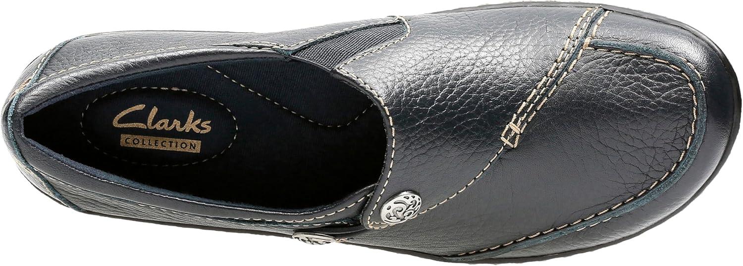 The ultimate in ease and wear ability, this classic slip-on shoe from the clarks collection is crafted of supple leather on a popular low bottom. incredibly comfortable, it features a stretch gore, fabric linings, and super flexible, lightweight tpr outsoles. this go-to women's shoe is an excellent choice for career or casual wear.