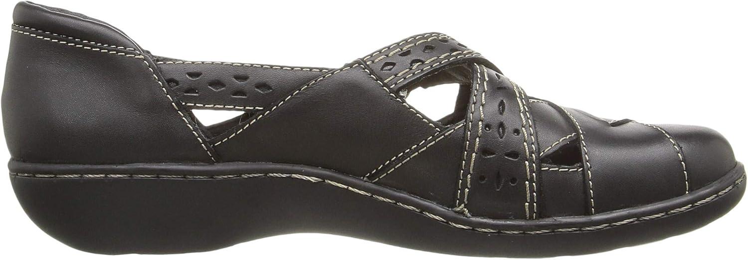 Beautifully constructed in soft leather with a low wedge for walking ease, this clarks collection shoe goes way beyond basic. an adjustable hook-and-loop strap, fabric linings, and super flexible, lightweight tpr outsoles cushion the foot in comfort.