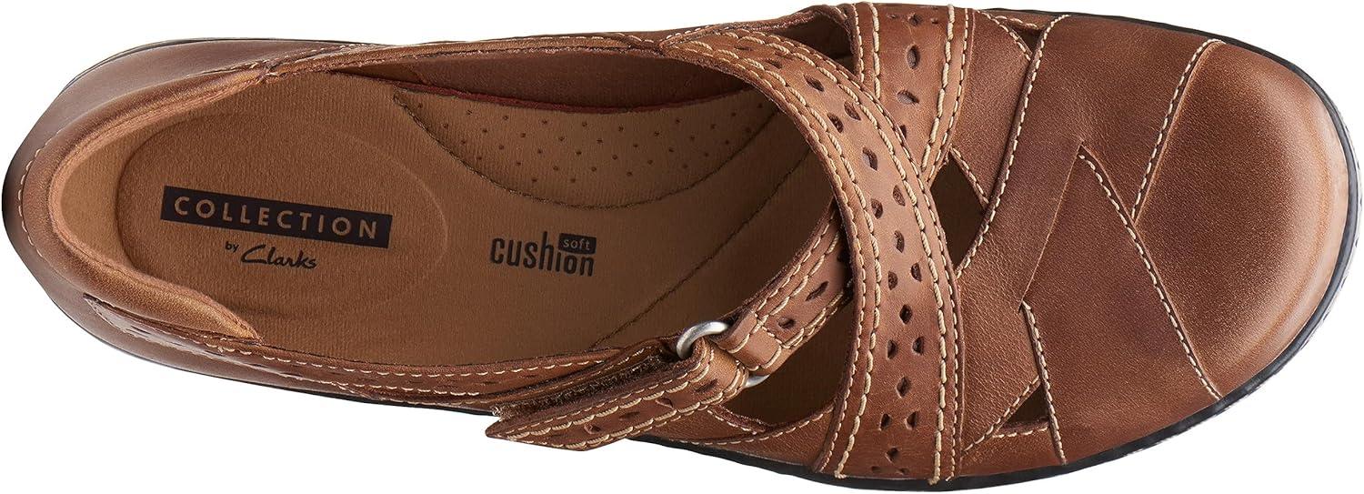 Beautifully constructed in soft leather with a low wedge for walking ease, this clarks collection shoe goes way beyond basic. an adjustable hook-and-loop strap, fabric linings, and super flexible, lightweight tpr outsoles cushion the foot in comfort.