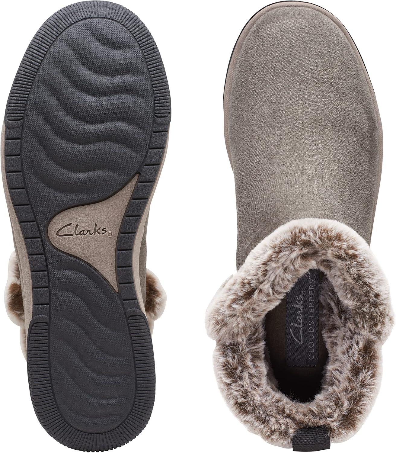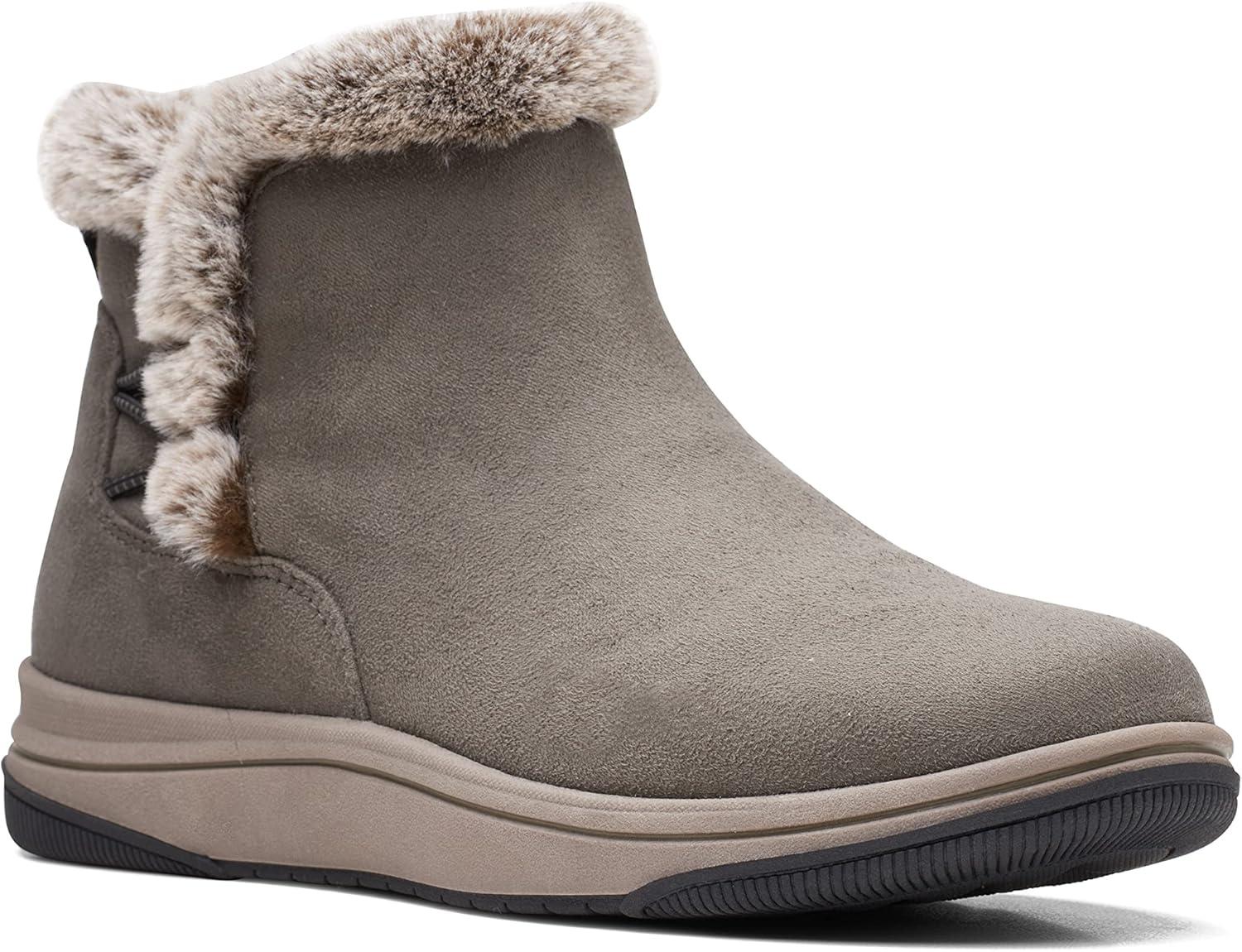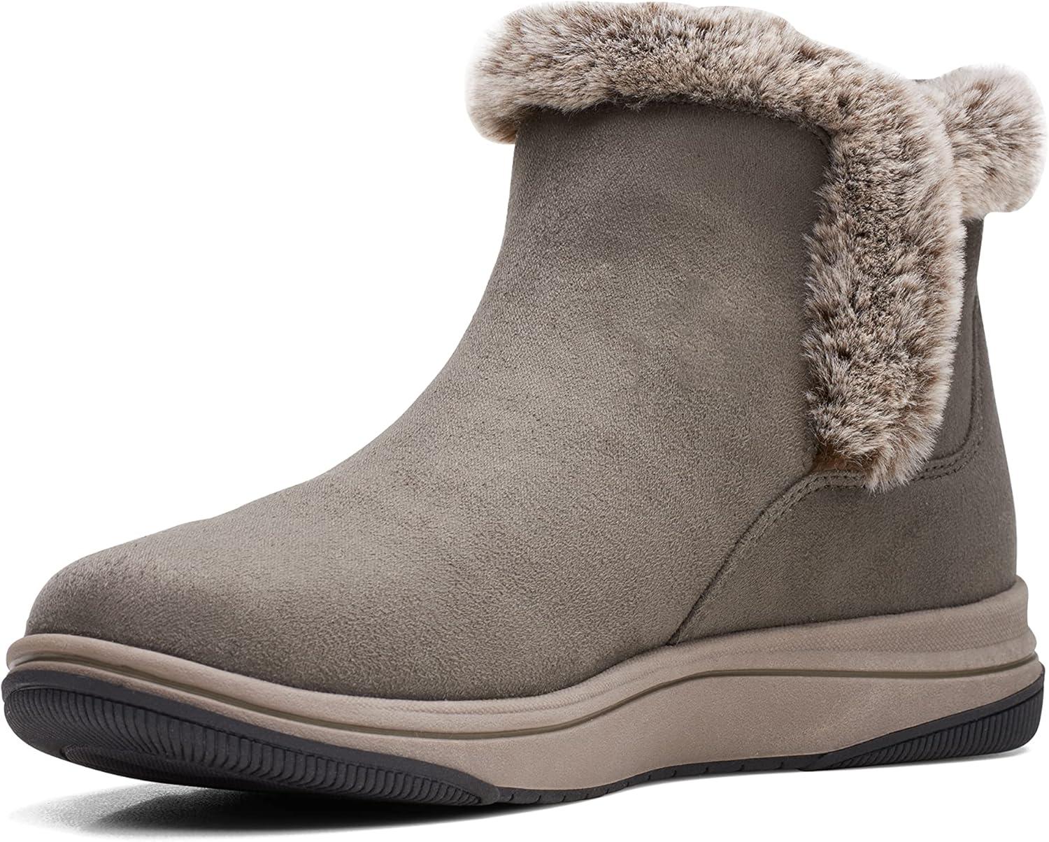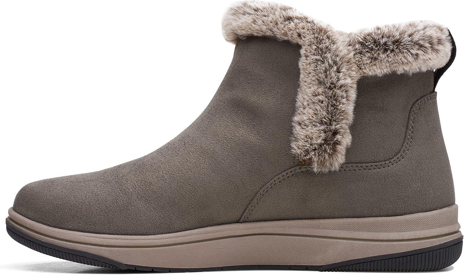 Clarks Women’s Breeze Fur Ankle Boots(Dark Olive Textile)
