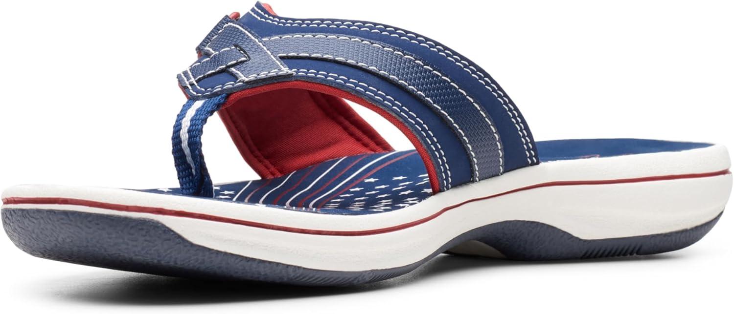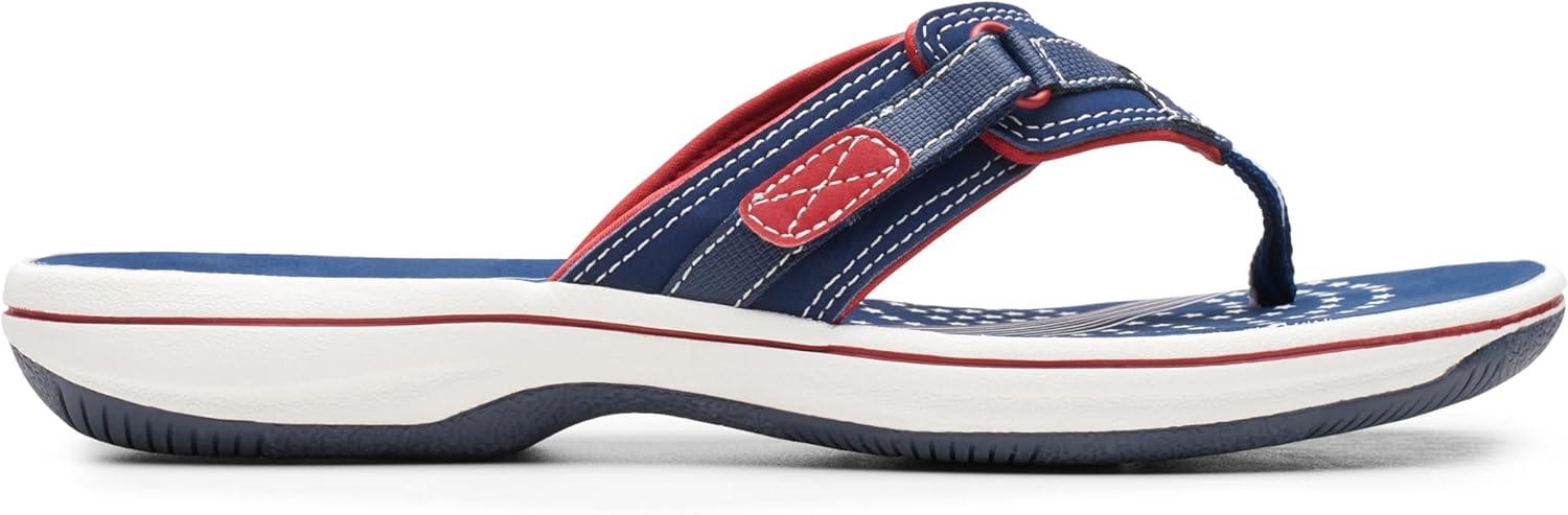 Clarks Women’s Breeze Sea Flip-Flop(Navy/Red Synthetic)
