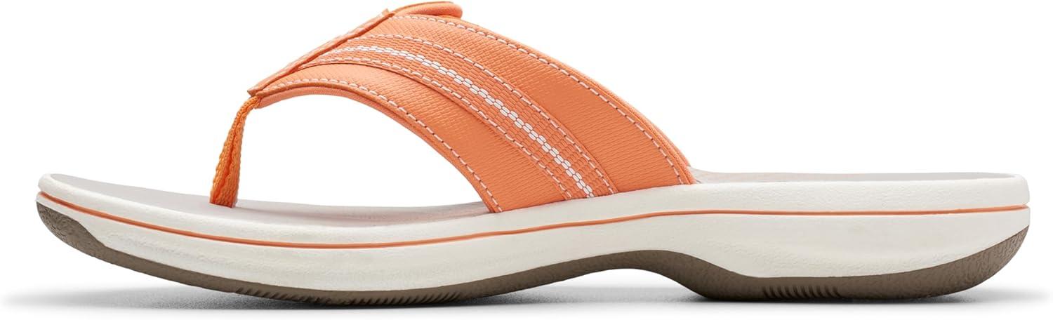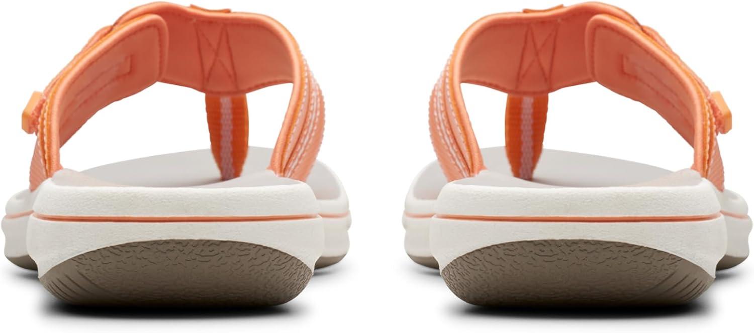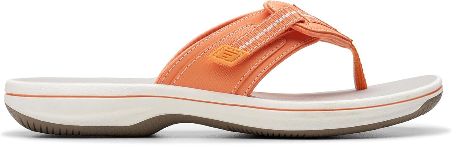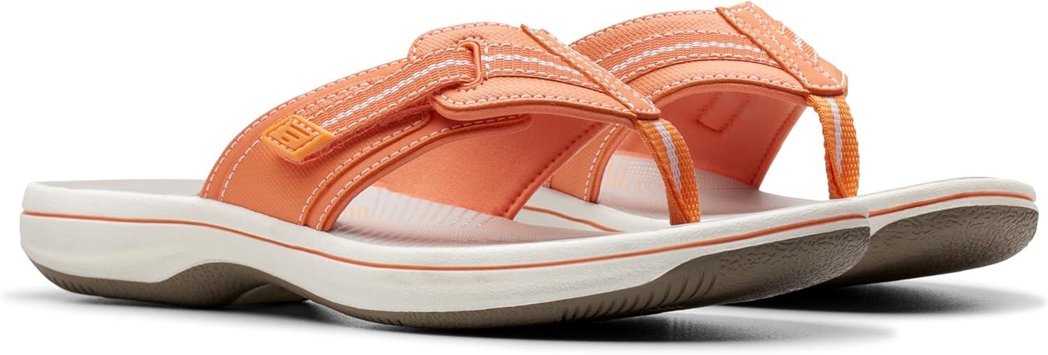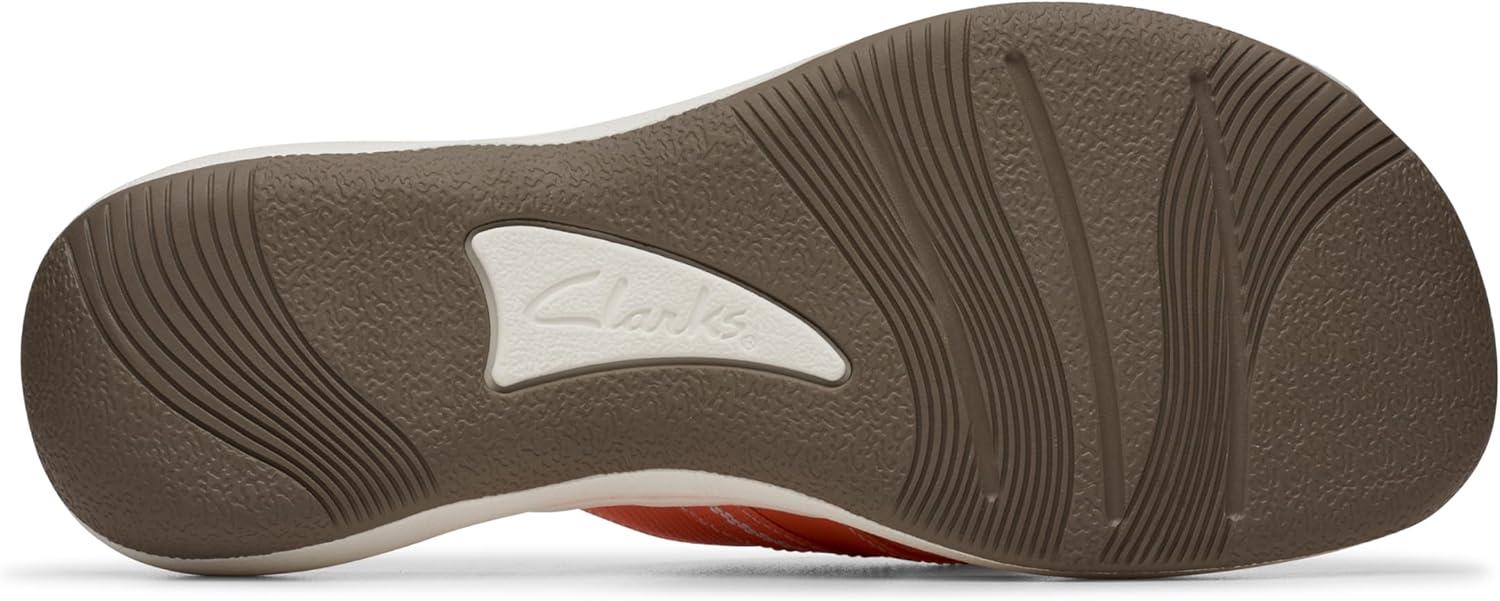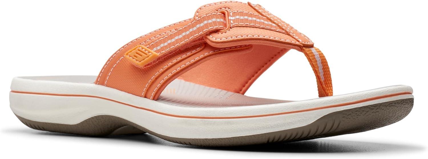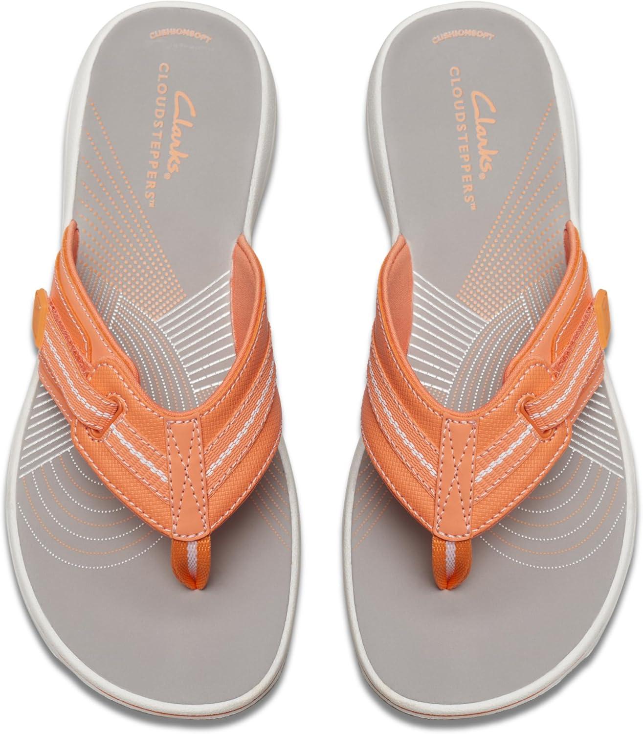 Choose this comfy flip-flop from the clarks collection for truly carefree summer dressing. offered in an array of colors with adjustable hook-and-loop closure, synthetic linings, printed eva footbed, and rubber outsole, this women's sandal brings a fun, beachy vibe to everyday wear.