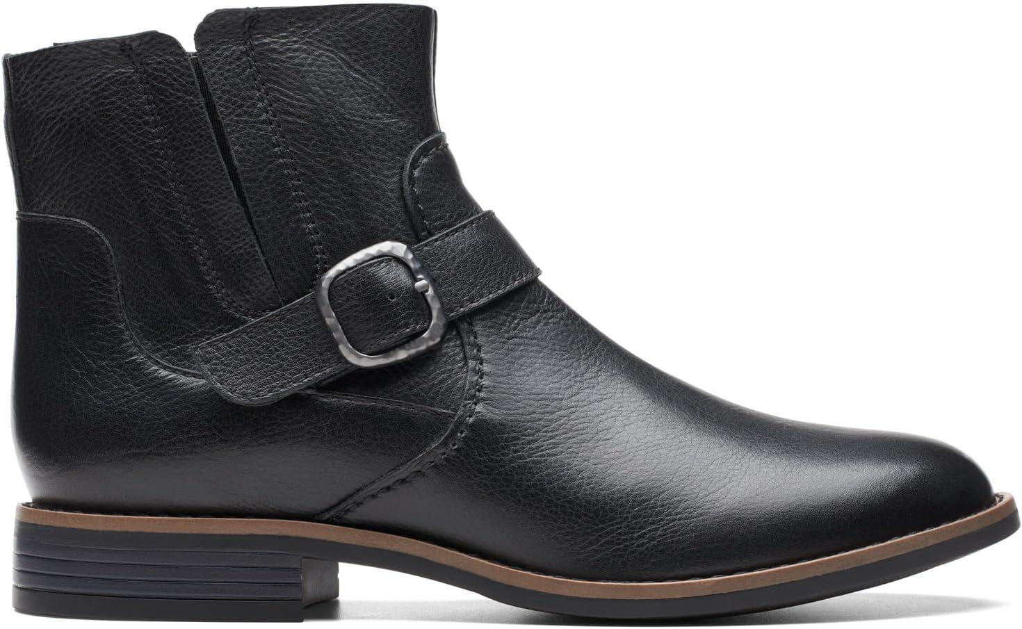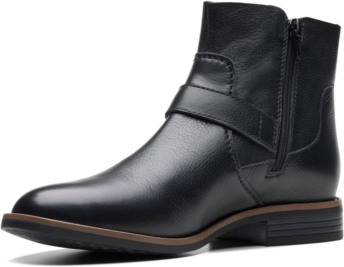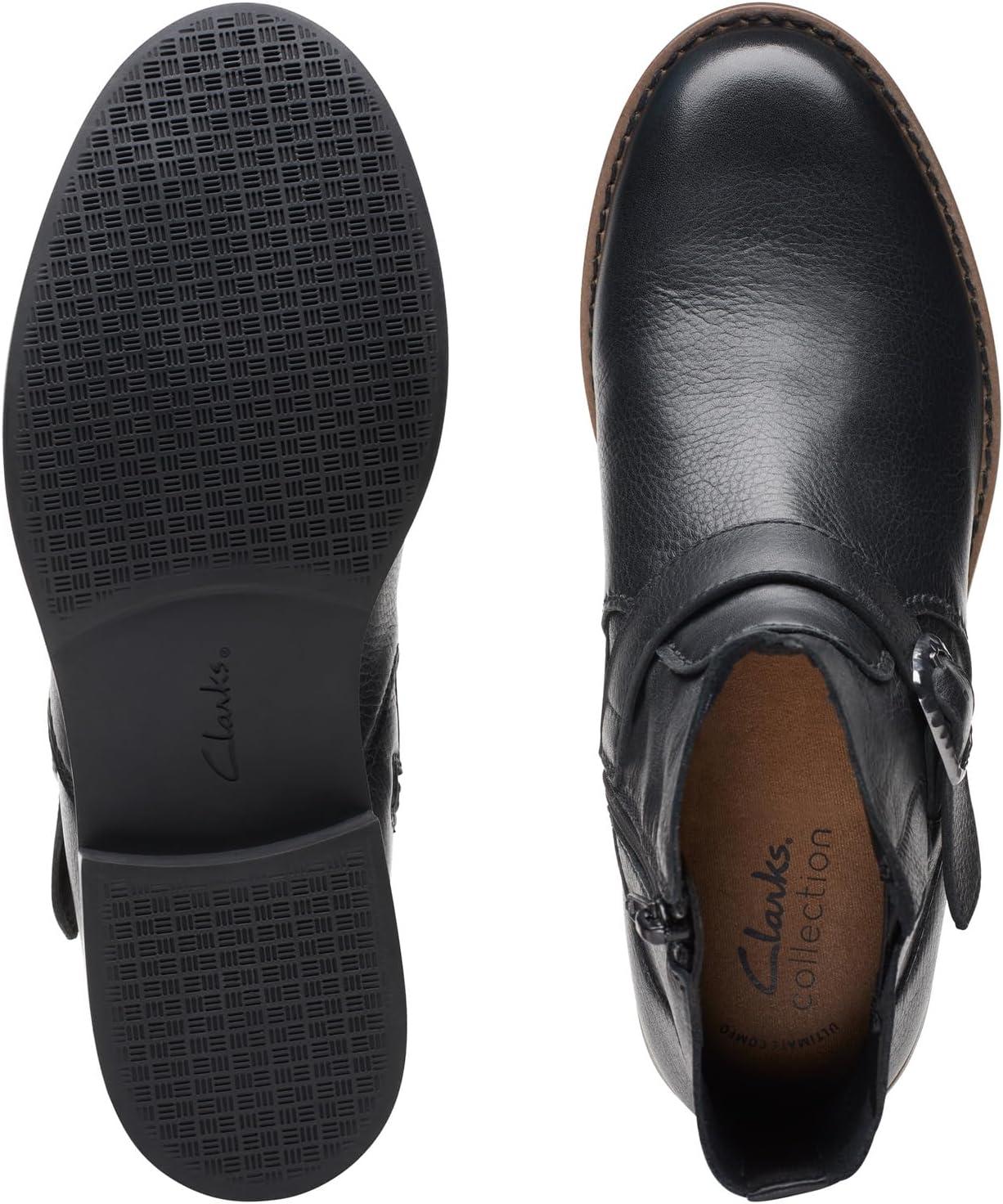 Clarks womens Camzin LoopAnkle Boot(Black Leather)