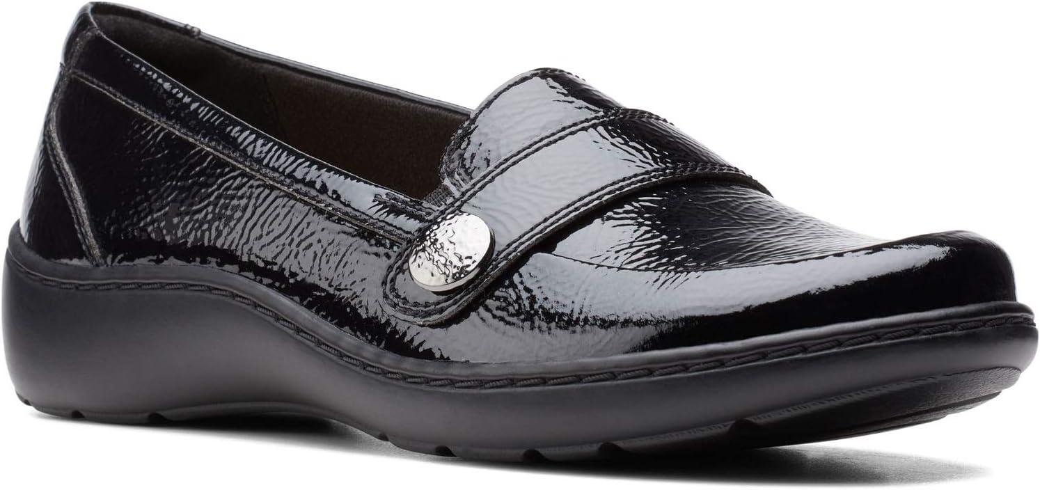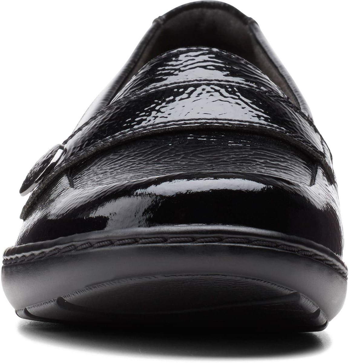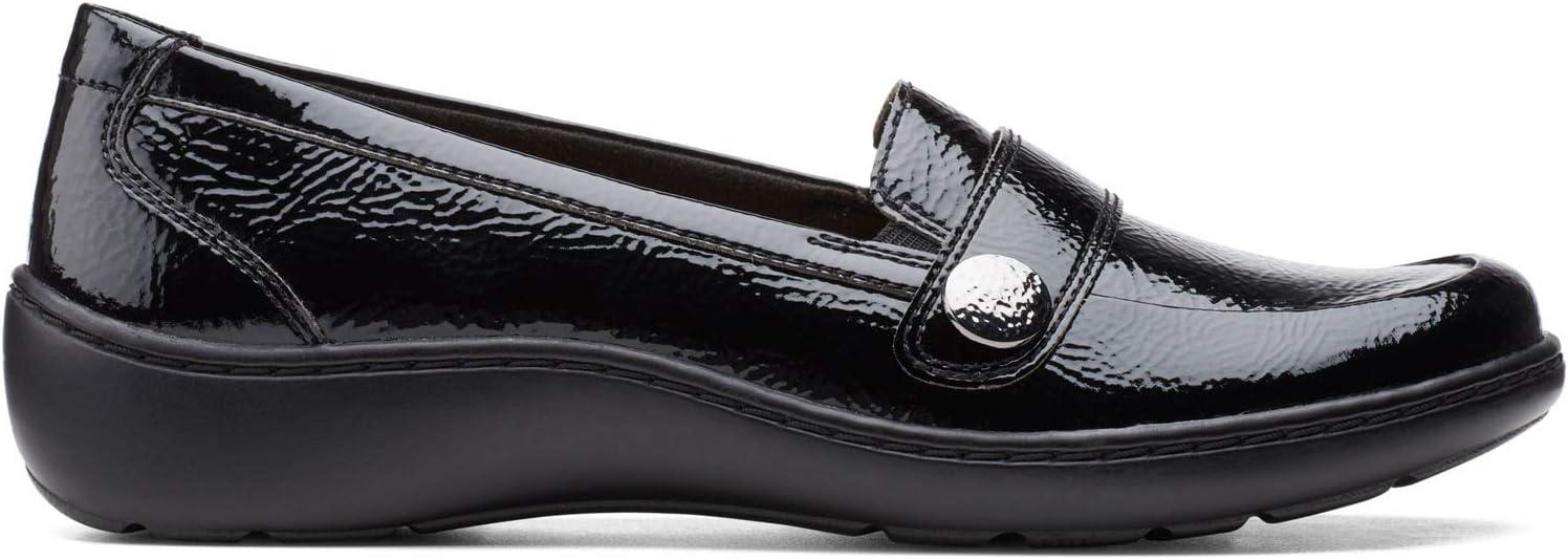 Clarks Women’s Cora Daisy Loafers(Black Synthetic Crinkle Patent Synthetic)