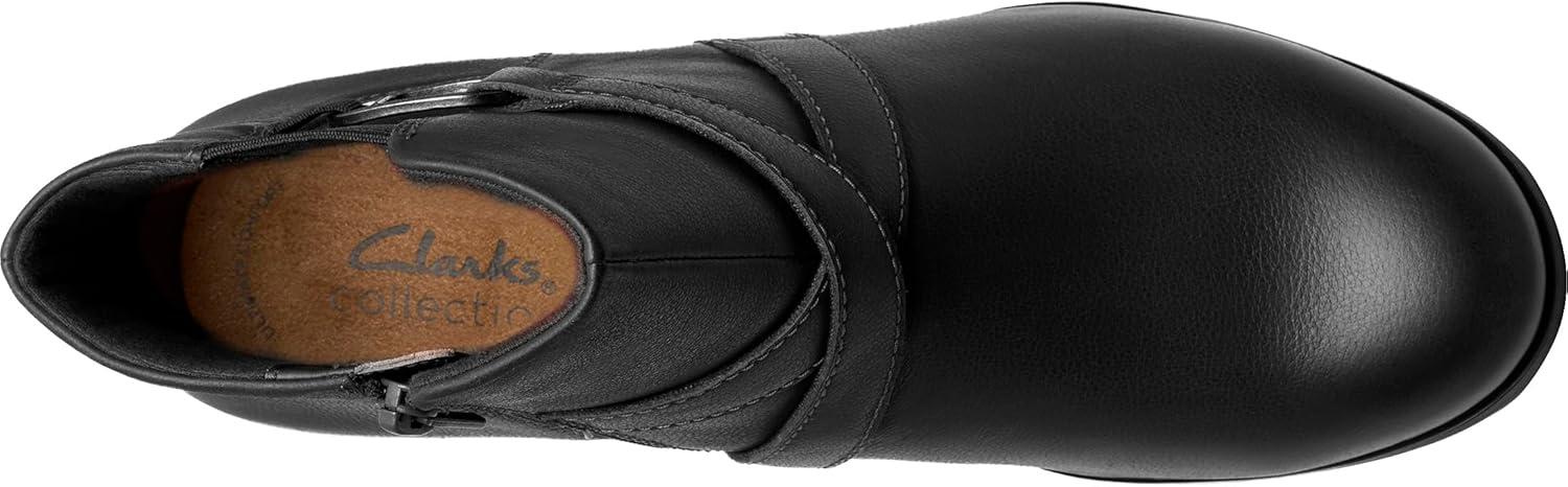A versatile ankle boot for all-day everyday styling, Emily2 Henley makes use of an easy-walk block heel for total support. Crafted leathers complement the foot perfectly, while Clarks Collection signature underfoot cushioning keeps steps feeling easy and free. – Premium chocolate leather upper with decorative buckle hardware – Ultimate Comfort foam footbed delivers lasting cushioning – Grippy and flexible TPR (thermoplastic rubber) sole brings extra stability and traction – Heel height: 55mm