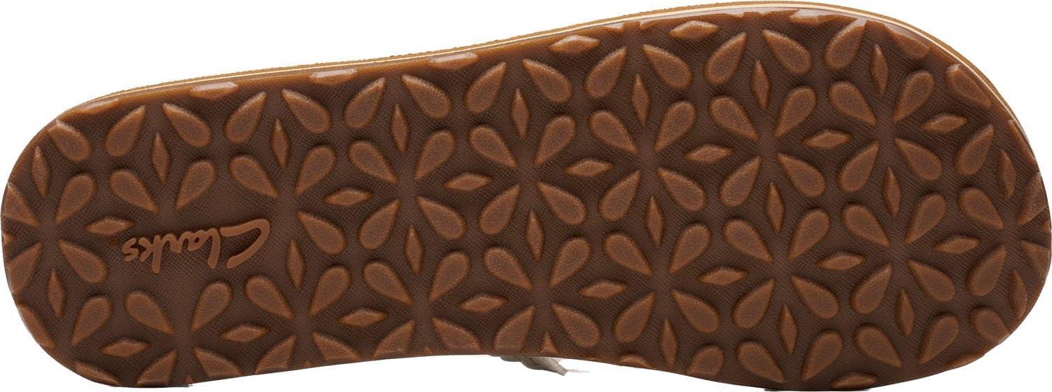 A carefree summer flip-flop with clarks collection aesthetics and comfort. made with honey synthetic straps with hardware accents, it pampers the foot with soft textile linings, a burnished eva footbed with cushion soft layers, and a tpr traction outsole. looks great with jeans, shorts or swimwear.