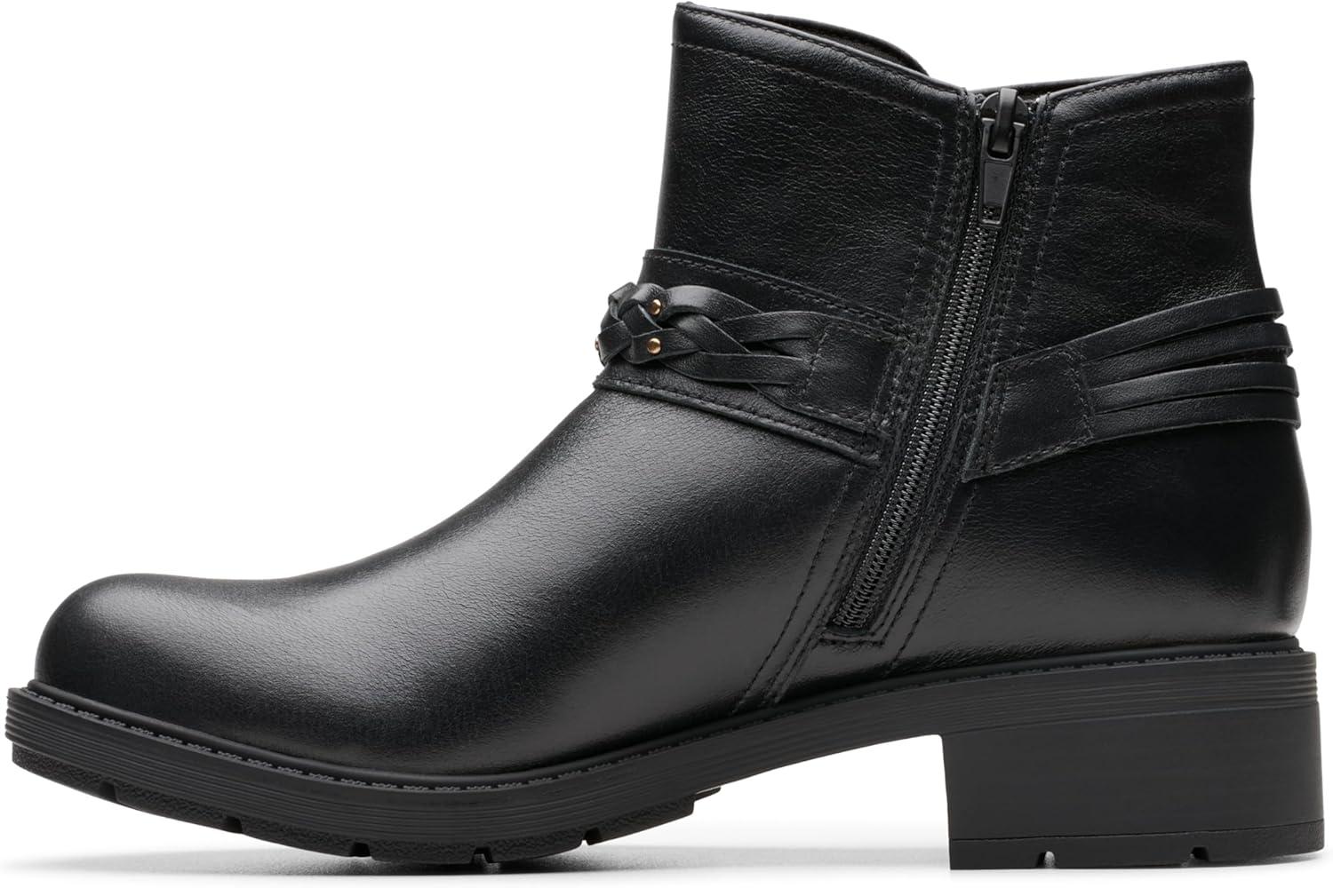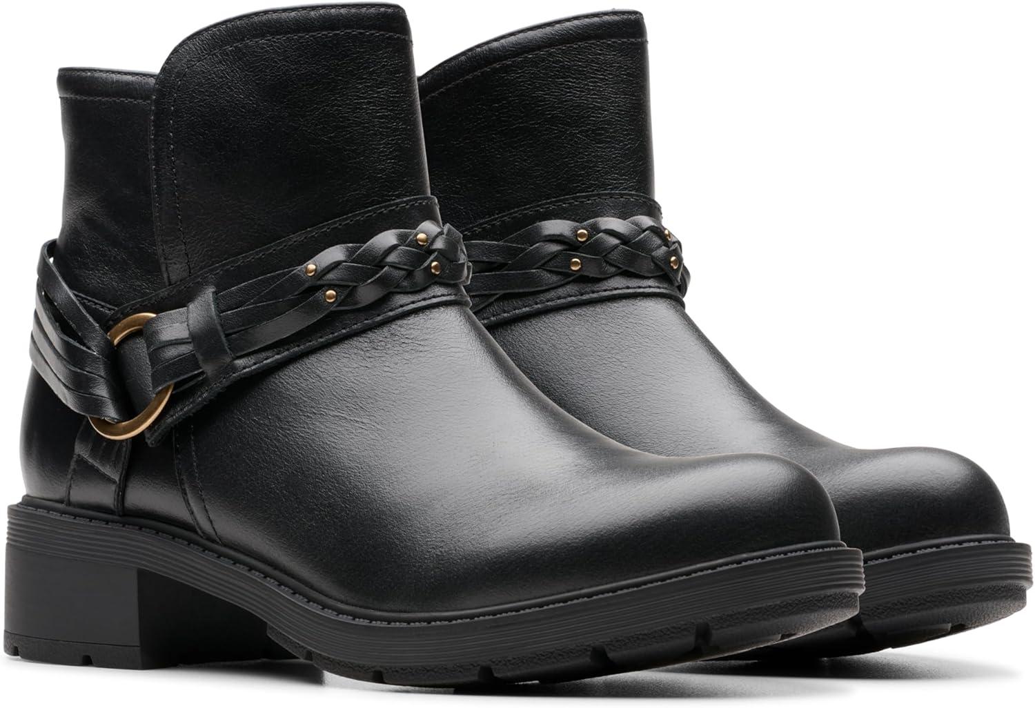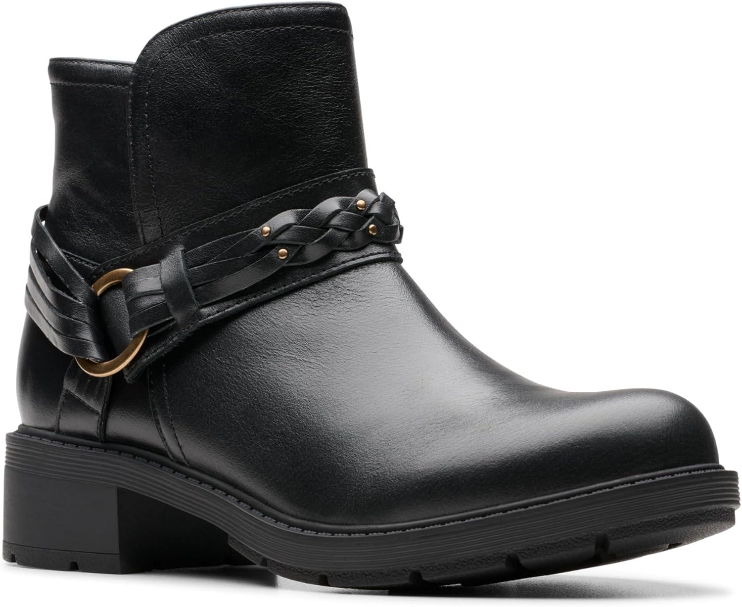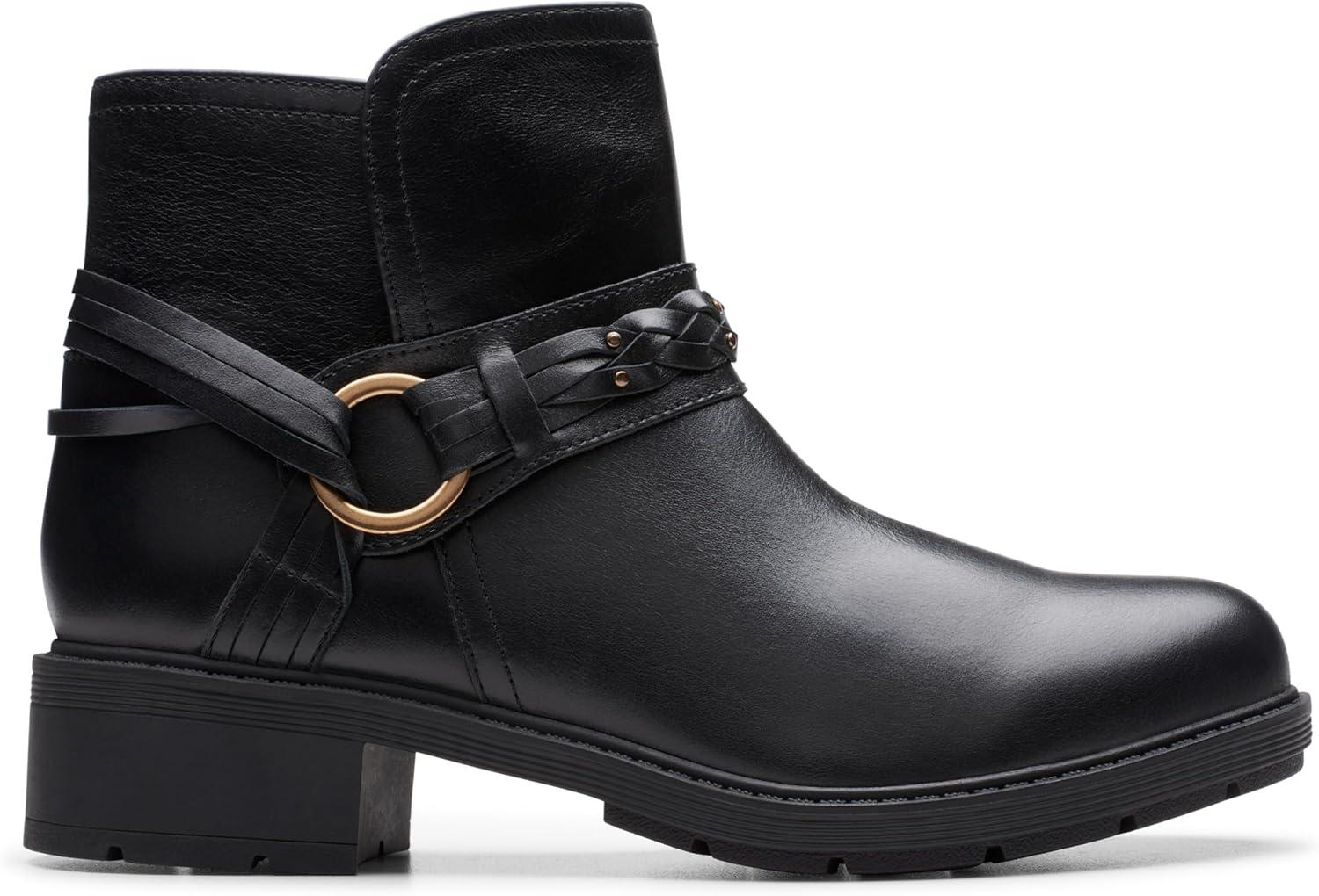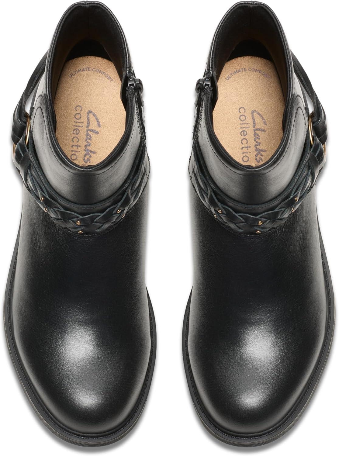 Clarks Women’s Hearth Kaylie Ankle Boot(Black Leather)