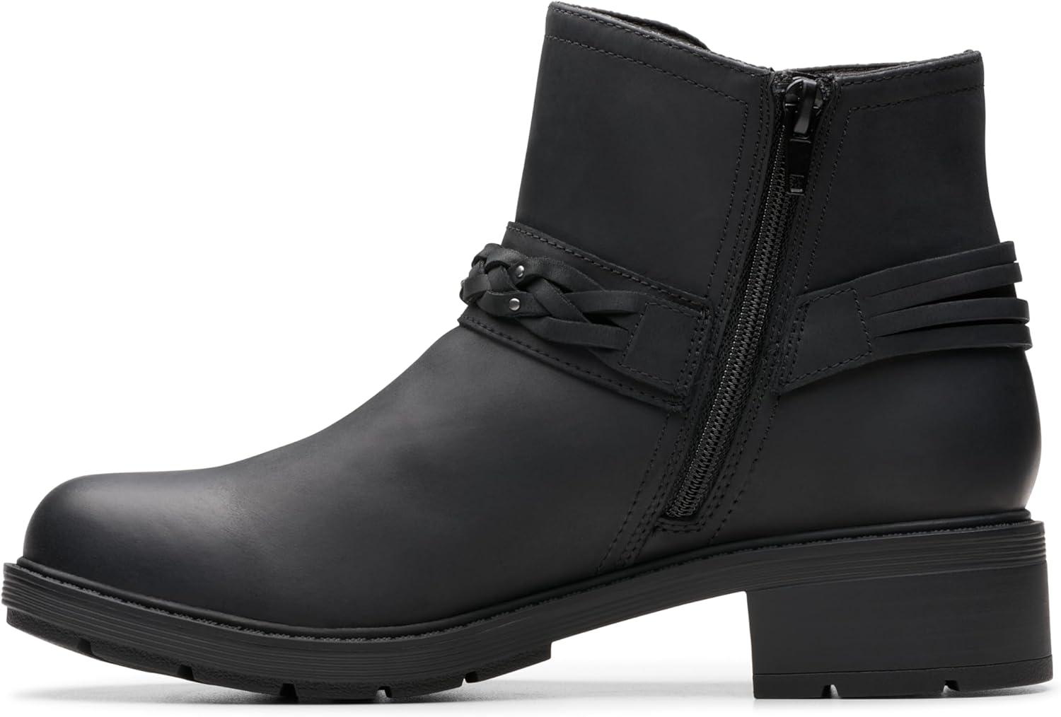 Clarks Women’s Hearth Kaylie Ankle Boot(Black Oily)